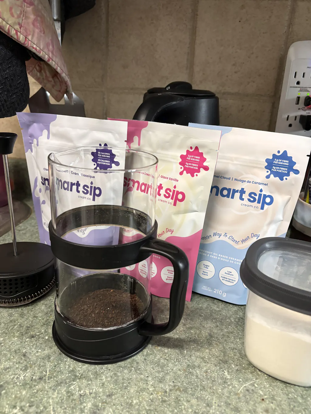 Love the new flavour. I learnt about smart sip towards then end of summer 2025 and it peaked my interest. I wasn’t sure I wanted to commit to the minimum ship amount but learnt I would be passing by a retailer in Saskatchewan on a birthday getaway in September so I put it on my list of stops. I’ve been drinking it in my morning coffee ever since. Naturally I had to try the new caramel cloud now that it’s come out. I was so confident I would like it I ordered a couple in my first order and immediately a couple more when you had your birthday sale. That’s right, I placed two orders only a couple days apart knowing I would love the new caramel flavour and now that’s it’s a staple in my morning coffee I couldn’t say no to a sale. I keep a couple flavours in my locker at work and the full line in my coffee cupboard at home with backup in my pantry. Thank you for helping me get closer to my daily fibre goals